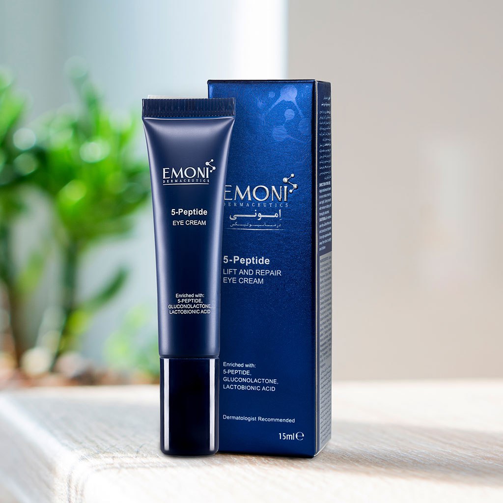 این محصول چروک های زیر چشم و خطوط پنجه کلاغی دورچشم را کاهش داده و از ایجاد چین و چروک های جدید جلوگیری می کند. این فرآورده جذب پوستی بسیار خوبی دارد و احساس اولیه ی خنکی در دورچشم ایجاد می کند. کرم دور چشم 5- پپتید با دارا بودن عوامل آبرسان قوی خشکی نواحی دور چشم را از بین می برد و باعث رطوبت رسانی موثر به این نواحی می شود.