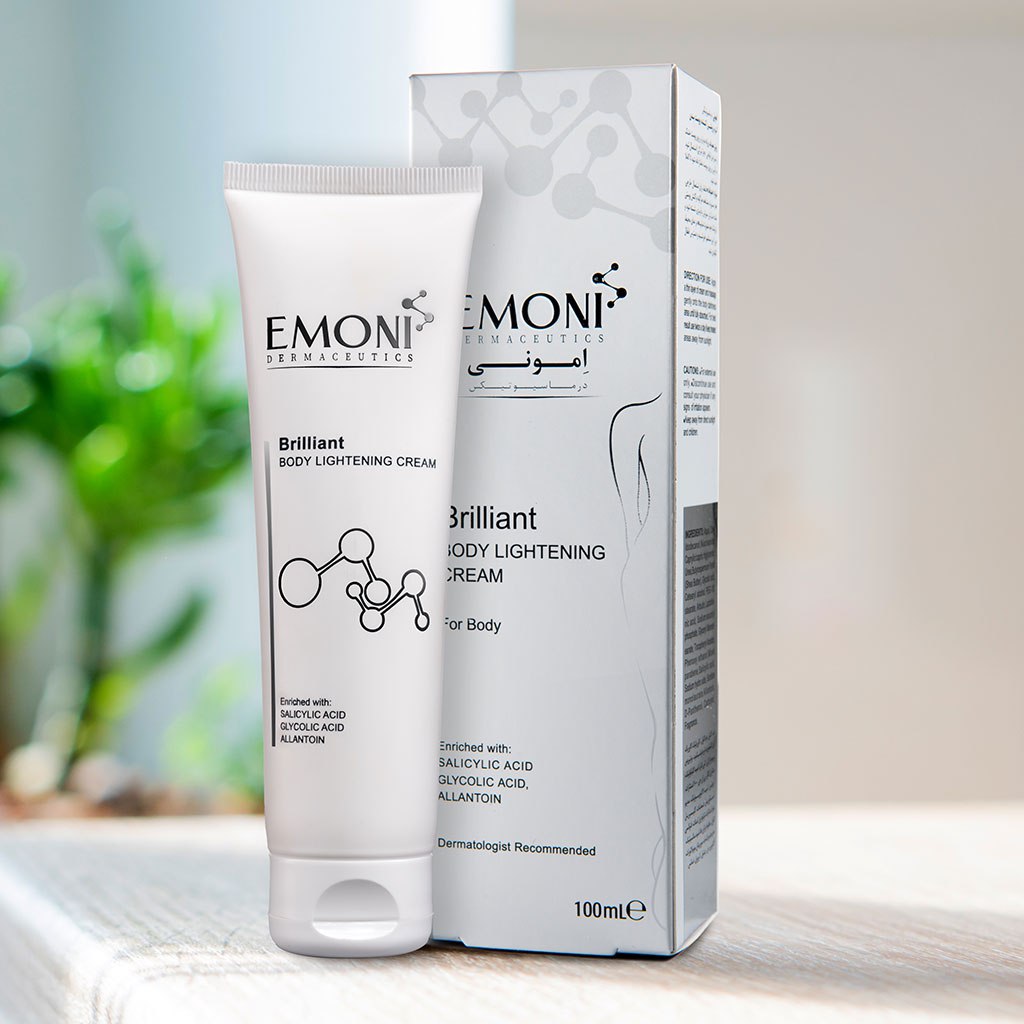 این محصول به روشن شدن نواحی تیره ی پوست بدن به خصوص کشاله ران و زیربغل کمک می کند. ترکیبات موجود در این محصول باعث لایه برداری، رطوبت رسانی و کاهش تولید ملانین در پوست می گردند. بریلیانت مناسب همه انواع پوست می باشد و بهتر است 30 دقیقه پس از شستشوی نواحی مورد نظر استعمال گردد.