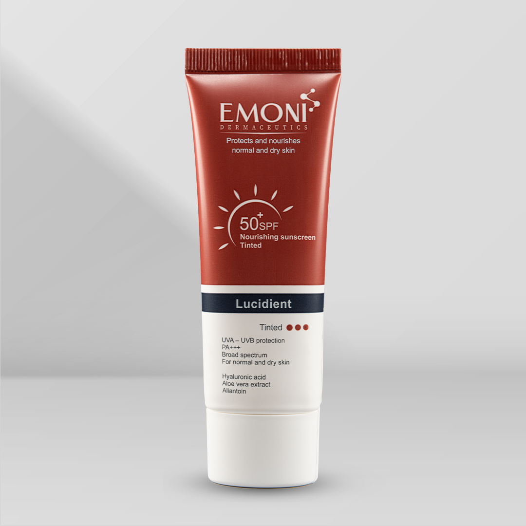 کرم ضد آفتاب رنگی امونی درماسیوتیکس مناسب پوستهای خشک، معمولی و حساس. این محصول یک ضد آفتاب وسیع الطیف، مخصوص پوست های نرمال، خشک و حساس می باشد. در این محصول با استفاده از تکنولوژی Design of expert (طراحی آزمون)، ترکیبی از فیلترهای فیزیکی و شیمیایی نسل سوم شامل Tinosorb® M، Tinosorb® S، Uvinul® T150، Uvinul® A plus و Octocylene، به نحوی مورد استفاده قرارگرفته اند، که با یکدیگر سینرژیسم (هم افزایی) ایجاد کرده و با پوشاندن تمام محدوده طول موج UVA و UVB سبب حفاظت قوی پوست در برابر اشعه های مضر آفتاب می گردد. این محصول با دارا بودن ترکیبات مرطوب کننده، مغذی و ترمیم کننده، سبب نرمی و لطافت پوست می گردد.